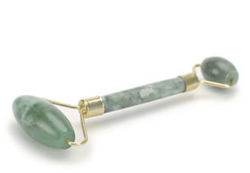 Deluxe double jade roller measures ~6" long, with 2" rollers at one end and a 1" roller on the other. These rollers have been used in China for centuries and can be used daily to help preserve the skin's youthful appearance. The coolness of jade closes the pores while the roller moves lymph, which can reduce puffiness and wrinkling. Commonly used in cosmetic acupuncture, it may also be used on the neck, arms, legs and other parts of the body.